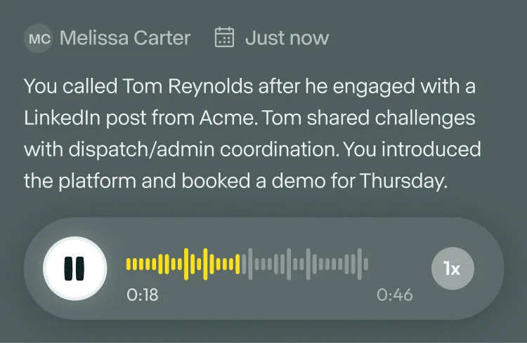 The AI Assistant helps you follow up, get things done, and know exactly what’s happening.