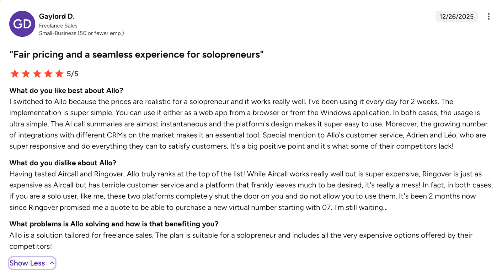 The AI summaries are the real differentiator for setters. After every call, Allo generates a concise summary of what was discussed. As a setter working for an infopreneur, you can forward this summary directly to your client as proof of work. No other dialer at this price point offers this specific capability in a way that's useful for the setter-closer model.