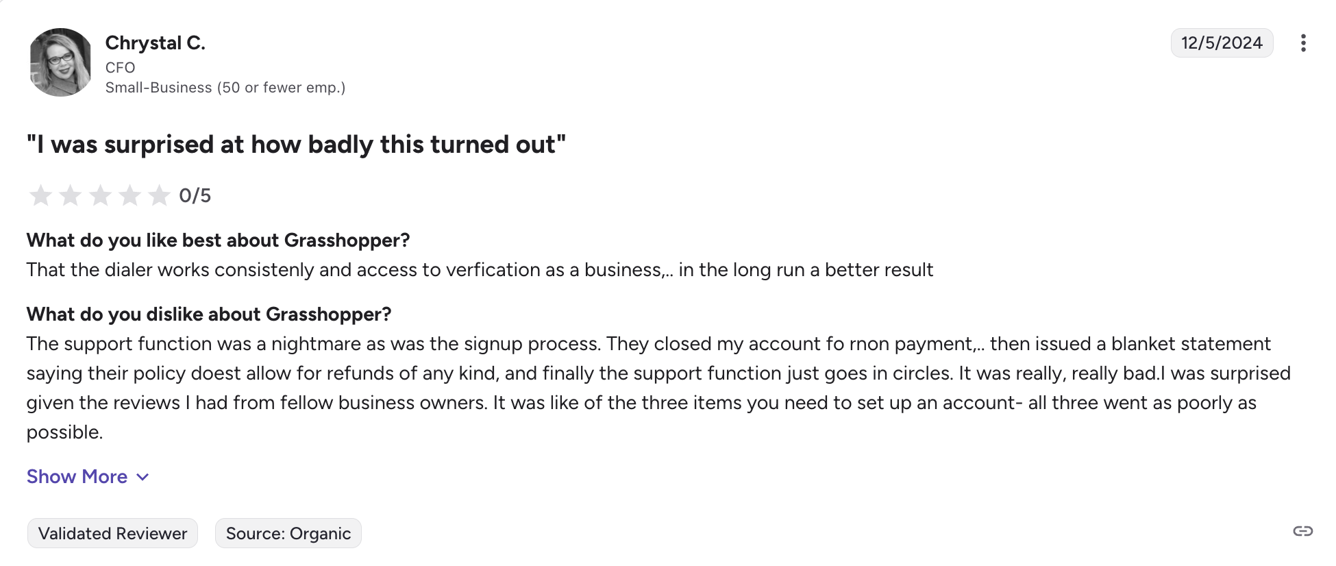 - Grasshopper on G2 has a score of 3.9 out of 5 on G2 with customers complaining about nightmare support, confusing signup, and aggressive billing practices.