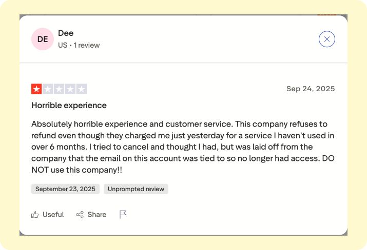 - Cancellation headaches (auto-renewals, hard to get a refund)