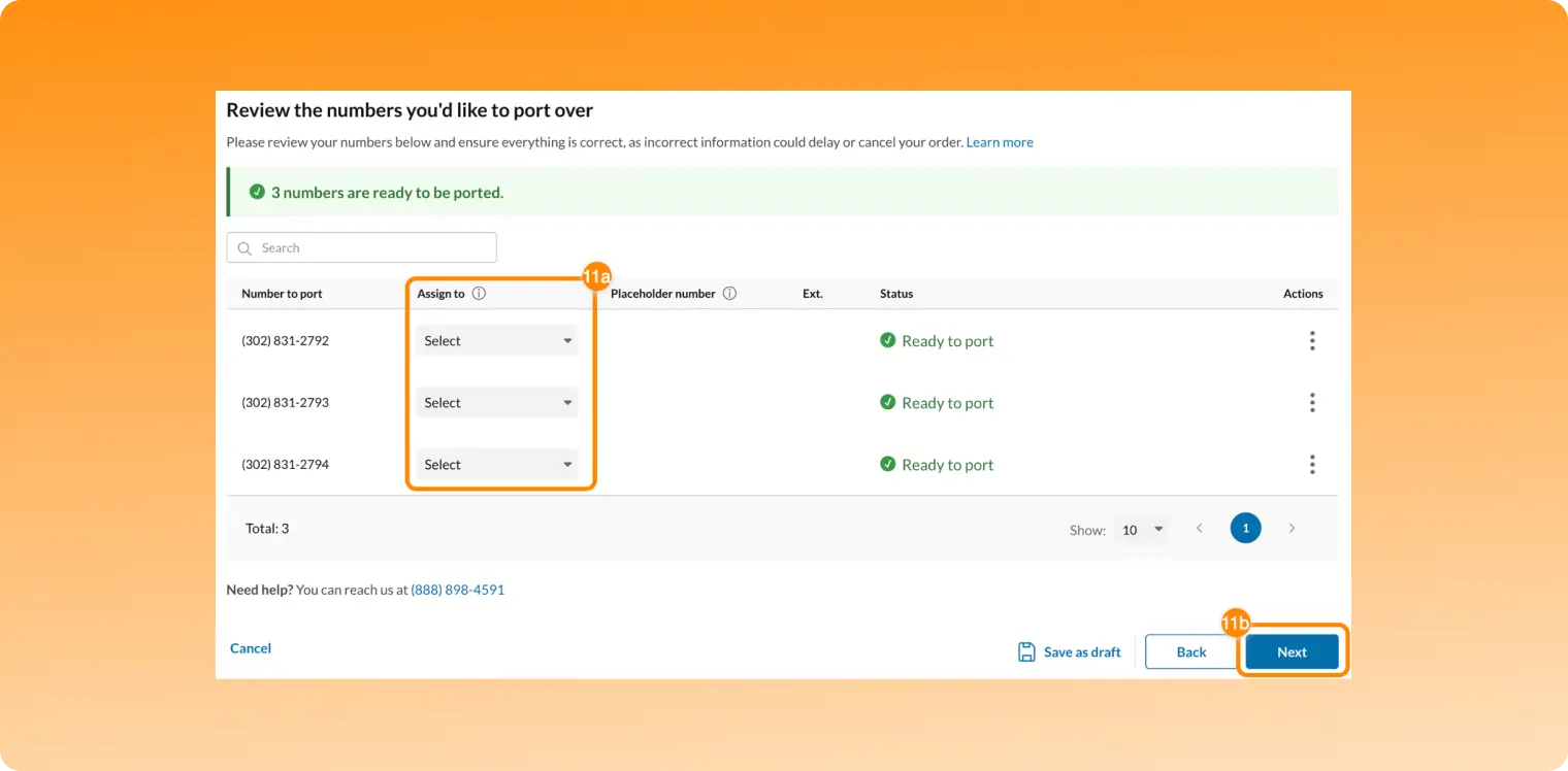 3. List the numbers you want to port: You can transfer one or several numbers at once, just list them clearly in the form.