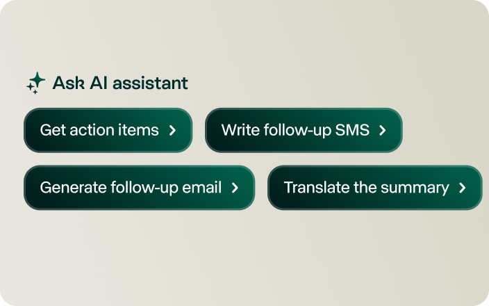 Grabamos y transcribimos sus llamadas automáticamente. Su equipo puede mantenerse presente en la conversación en lugar de tomar notas y perder el hilo.