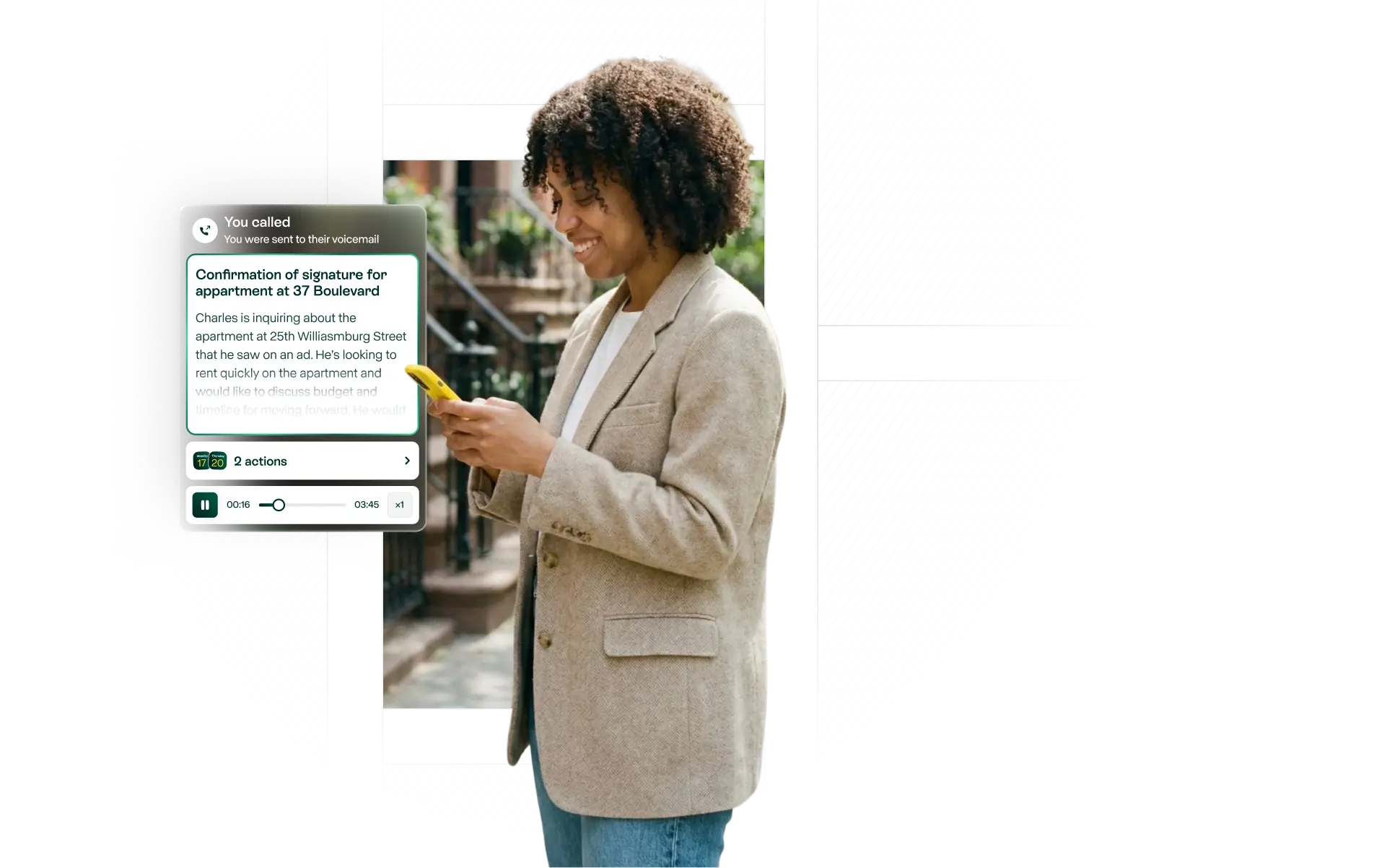 Allo highlights names, questions, and next steps so you know exactly what the caller needs before you dial back. No more guessing or listening to long recordings.