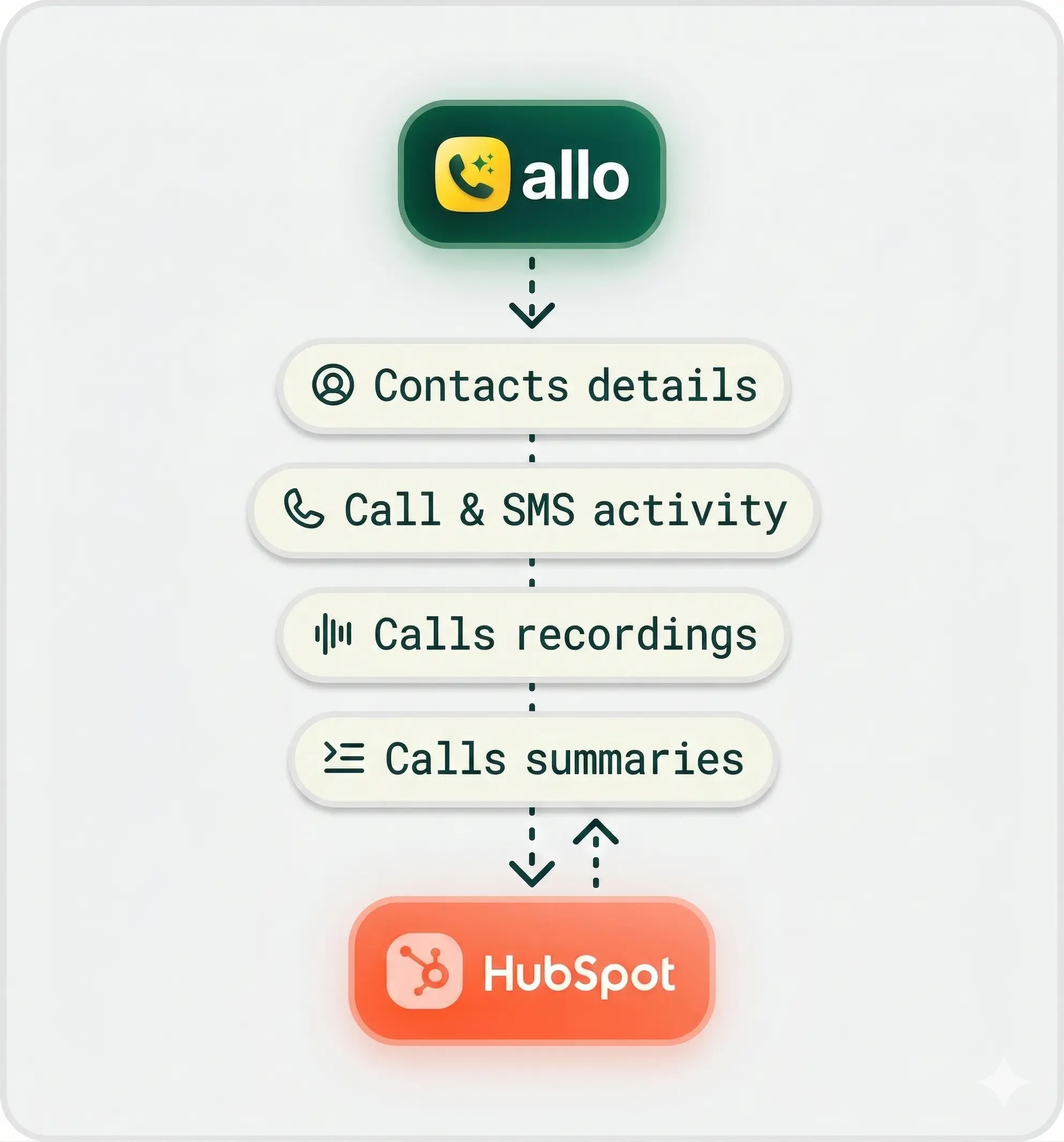 Haz llamadas, registra la actividad y cierra más negocios sin salir de HubSpot. El marcador integrado de Allo sincroniza todo con tu CRM de forma automática.