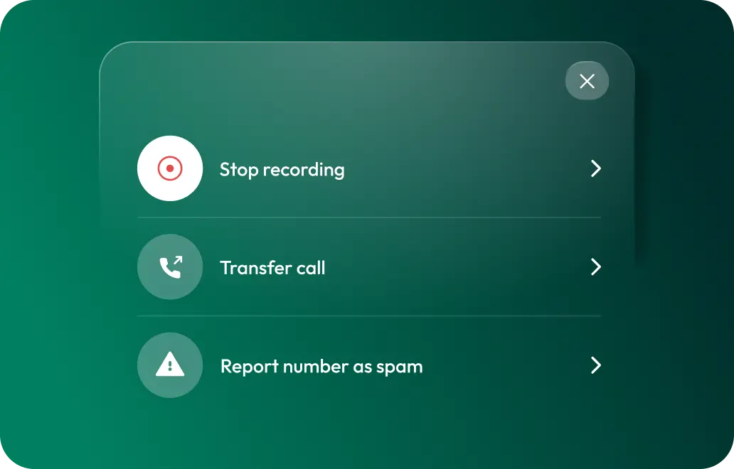Easily set up forwarding calls from your app or desktop to redirect calls to another number, a colleague, or voicemail.