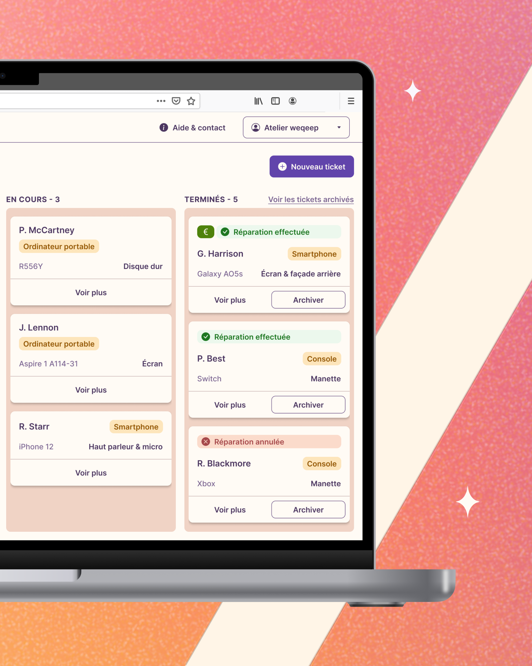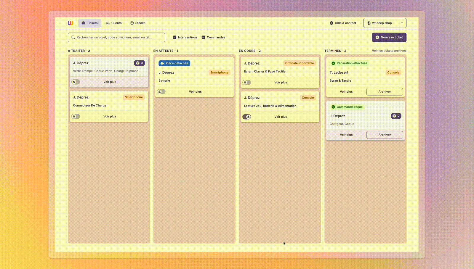 weqeep is the operational backbone for repair shops: smartphones, computers, bikes, and small appliances. Founded in 2025 and headquartered in Caen, France, the product was built from the ground up based on a simple but striking observation made during 100+ field visits to repair workshops.